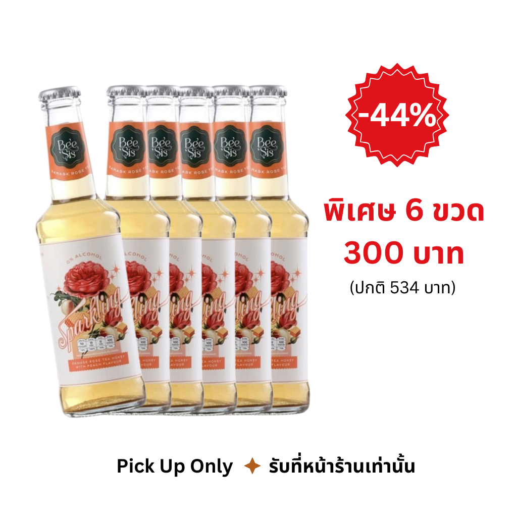 [Pro 6 ขวด 300 บาท] Sparkling Rose Tea Peach เครื่องดื่มอัดก๊าซ ชากุหลาบน้ำผึ้งกลิ่นพีช 265 มล./ขวด