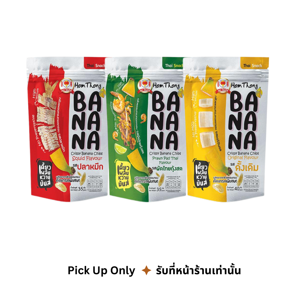 ขนมจากผลไม้กล้วยหอมทอง ปรุงรสด้วยเนื้อปลาหมึกในรูปแบบผง อายุการเก็บรักษา : 12 เดือน (BBF) 1 ซอง = 40 กรัม / 1 ลัง = 24 ซอง ราคาจำหน่ายปลีกซองละ 39 บาท ราคา 3 ซอง = 100 บาท ราคา 6 ซอง = 180 บาท