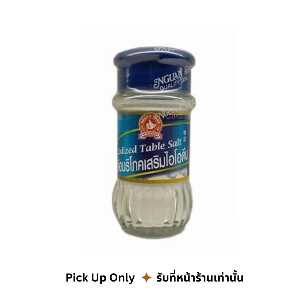 ง่วนสูน ตรามือที่ 1 เกลือบริโภคเสริมไอโอดีน 60 g ส่วนประกอบ:เกลือไอโอดีน Iodized Table salt วิธีใช้ ใช้ได้กับอาหารทุกชนิด Ingredient : Iodized Table Salt Instuction : To add taste please keep in dry place