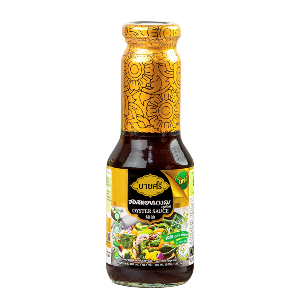ซอสหอยนางรม สูตรไลท์ "ตราบายศรี" สูตรเพื่อสุขภาพ เหมาะสำหรับผู้ที่ใส่ใจสุขภาพ ใช้ปรุงรสในการทำอาหาร ผัดผัก ทำน้ำซุป หรือหมักเนื้อสัตว์ให้นุ่มได้ รสชาติเข้มข้น กลมกล่อม อร่อยได้ง่ายๆ แบบไม่ต้องปรุงเพิ่ม OYSTER SAUCE (FORMULA LIGHT) "BYSRI BRAND" FOR COOKING FRIED VEGETABLE, MARINATES MEAT, SOUP, ETC. ไม่มีผงชูรส/ NO MSG, โซเดียมต่ำ/ LOW SODIUM, ไม่เจือสี/ NO ARTIFICIAL COLOURS, ใช้หญ้าหวานแทนน้ำตาล/ STEVIA ยี่ห้อ: BYSRI (บายศรี) อาหารพิเศษ: ฮาลาล/ HALAL, GLUTEN FREE ข้อมูลสำหรับผู้แพ้อาหาร: มีหอยนางรม และถั่วเหลือง ALLERGEN INFORMATION: CONTAIN OYSTER AND SOY ประเภทเครื่องปรุงรส: ซอสหอยนางรม อายุการเก็บรักษา: 1 ปี 6 เดือน หมายเลขใบอนุญาต/อย.: 74-2-01551-6-0028