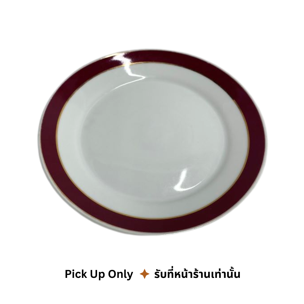 จานเซรามิค สีขาวขอบสีน้ำตาล