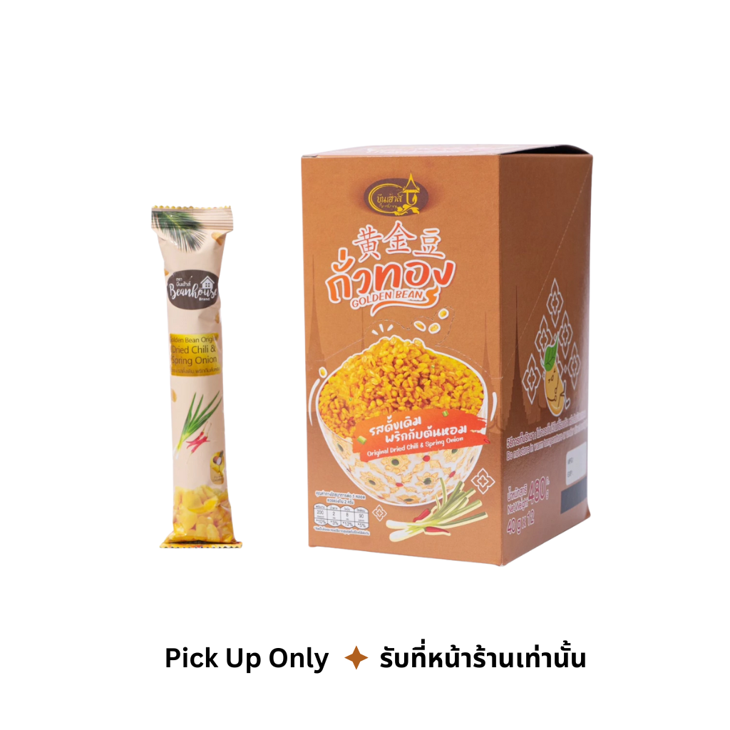 ถั่วทองปรุง รสดั้งเดิม พริกกับต้นหอม ตราบีนเฮ้าส์ คัดสรรจากถั่วเขียวเมล็ดใหญ่จากเกษตรกรไทย ปรุงด้วยน้ำมันมะพร้าว และปรุงรสด้วยพริกและต้นหอมแห้งในปริมาณพอเหมาะ ทำให้สามารถทานแทนมื้ออาหาร ได้รับประโยชน์จากถั่วเขียวและน้ำมันมะพร้าว ถั่วทองบีนเฮ้าส์ ได้รับการรับรองจาก อย., HALAL ภายใต้มาตรฐานการผลิต GHPs ,HACCP จึงมั่นได้ว่าเป็นสินค้าที่ปลอดภัยต่อผู้บริโภค เพราะ "รอยยิ้มของผู้รับคือความสุขของเรา"