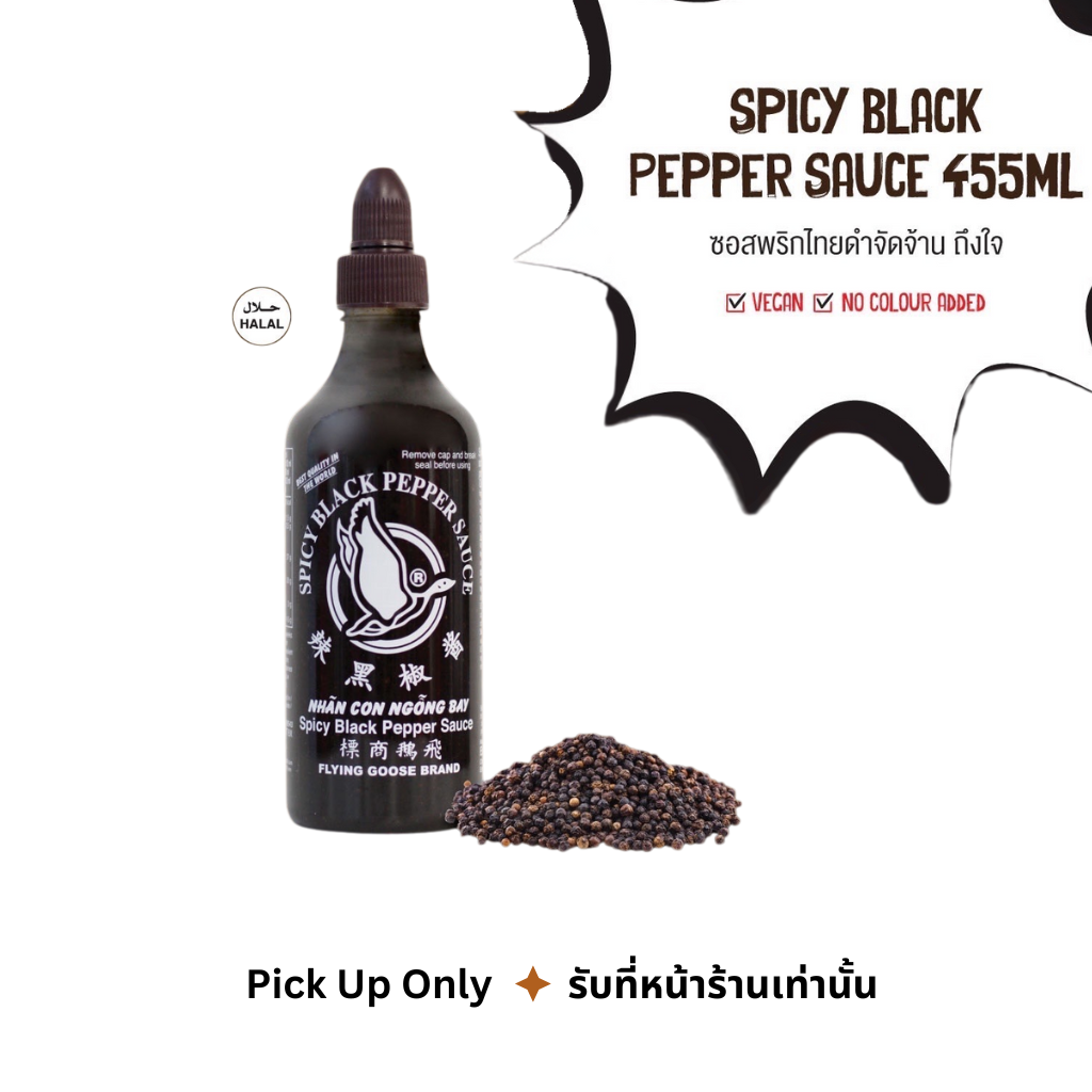 ซอสพริกไทยดำเผ็ดร้อน เข้มข้น หอมกลิ่นพริกไทยดำ จัดจ้านแบบไทยๆ เอาไปทำอะไรก็อร่อย! #อร่อยครบจบในขวดเดียว #หมักราดผัดจิ้มลองชิมแล้วจะติดใจ ❌ ไม่มีส่วนผสมของเนื้อสัตว์หรือส่วนประกอบของสัตว์ (Vegan Friendly🥬🍃 ) 👍 อร่อยดี มี Halal