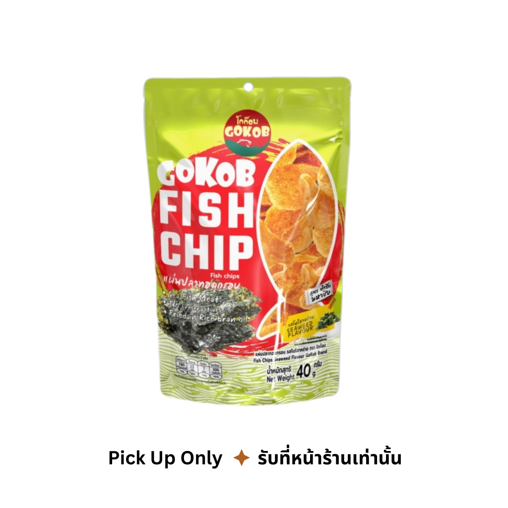 โกก๊อบ แผ่นปลาทอดกรอบ รสโนริสาหร่าย 40 กรัม GoKob /Fish Chips : Seaweed Flavour 40 g.