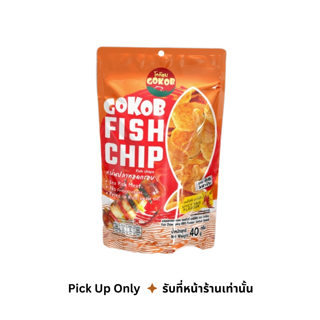 โกก๊อบ แผ่นปลาทอดกรอบ รสสไปซี่ บาร์บีคิว 40 กรัม GoKob /Fish Chips : Spicy BBQ Flavour 40 g.